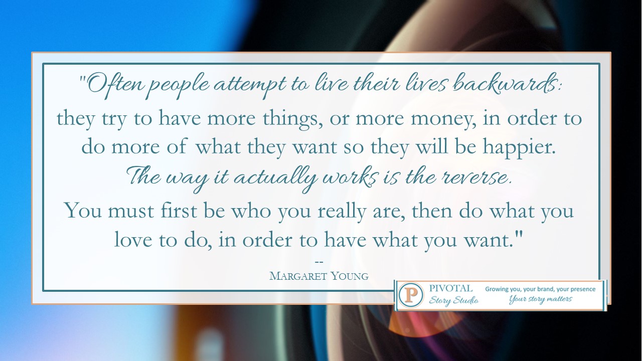 "Often people attempt to live their lives backwards: they try to have more things, or more money, in order to do more of what they want so they will be happier. The way it actually works is the reverse. You must first be who you really are, then do what you love to do, in order to have what you want."