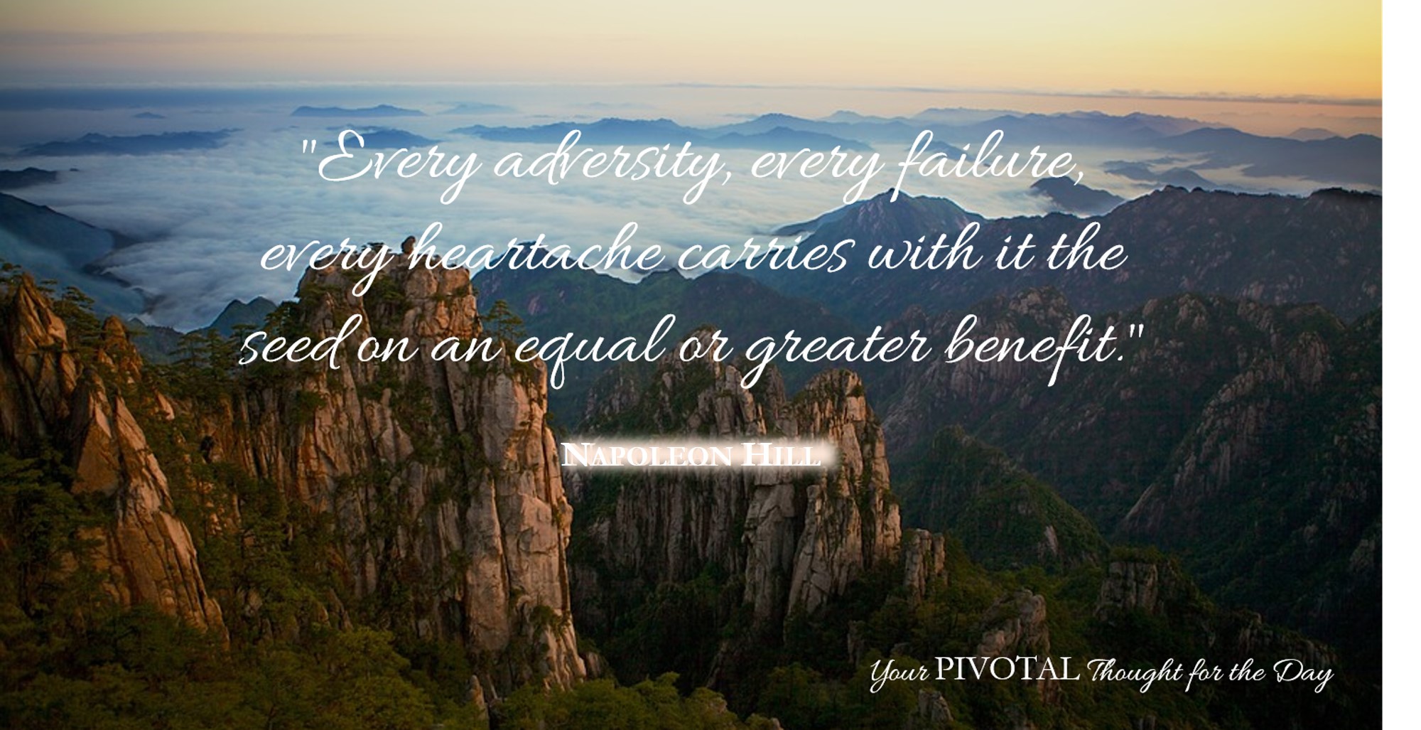 Every adversity, every failure, every heartache - Motivational quote from Napoleon Hill