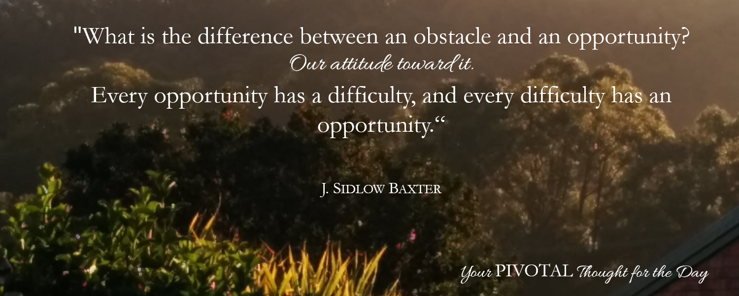 "What is the difference between an obstacle and an opportunity? Our attitude toward it. Every opportunity has a difficulty, and every difficulty has an opportunity."